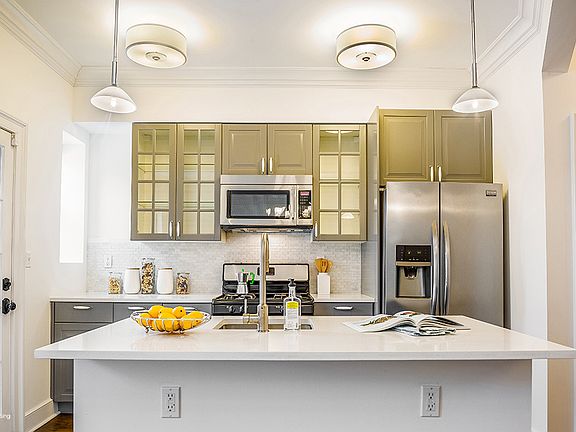 NO FEE + 2 MO FREE! Please include your phone number when inquiring about this listing. Get the most out of this fall as this home offers private access to the backyard and patio, complete with a turf lawn and gorgeous landscaping. Easily host a dinner party here as it's situated just off the gourmet kitchen. Travel inside and discover a state-of-the-art kitchen, offering a full suite of stainless steel appliances, including a gas range + hood, refrigerator, microwave and dishwasher. Meticulously designed, hints of gray throughout the tile backsplash are the perfect match for the cool gray custom cabinetry. White fixtures pop against their background and seamlessly tie in the pure white countertops, making this space a pleasure to look at. Enjoy a meal at the breakfast bar or in the dining nook just a few feet away. Make your way to the front of this level and discover a massive bedroom, complete with a large bay window and a lounge area. Travel upstairs and three huge bedrooms await, each with gleaming hardwood floors that shine from the endless amount of natural sunlight pouring in. Let your inner interior designer run wild in the master bedroom as it has a massive open floorplan, letting you personalize this space into the room of your dreams. The master also features a private en-suite bath, complete with radiant heated flooring, a double vanity, and an enormous custom walk-in closet. Also on this level find two more bedrooms, one with a huge bay window and walk-in closet and a second full bath. On the bottom level of this home find a laundry room and plenty of room for storage. Situated just a few blocks from the L train and near several major bus routes, you'll be able to quickly zip around the city and to Manhattan. Also nearby, you'll find delicious places to dine, including Houdini Kitchen Laboratory and Industry 1332. Gross Rent: $4,495 NER: $3,995 (2 MO free on 18-month lease) - 24/7 assistance - Pets allowed (Breed and weight restrictions apply, one-time fee varies by breed and weight.) - Best Applicant Policy Viewings available 7 days a week, make your appointment online today, or call Dixon Leasing to speak with an agent. WANT TO SEE EVEN MORE? We have homes for rent in a variety of sizes, layouts, and price points. Neighborhoods include: Park Slope / Cobble Hill / Clinton Hill / Fort Greene / Bed Stuy / Bushwick / Williamsburg / Crown Heights / Harlem / Weehawken / Jersey City (and more!)