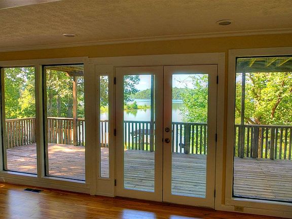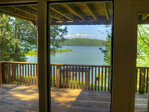 This lakefront house has it all, with 3 bedrooms, 3 baths, and a view from nearly every room. LAKE AND MOUNTAIN VIEWS. You do not want to miss this opportunity! The main floor has a front deck area that faces the lake, Flat Creek, and the private, nearly level yard. When you first walk in, you will notice the large living area with a wood burning fireplace, and an entire wall of floor to ceiling windows to showcase the lake. There is newly refinished hardwood flooring throughout the entire house. One bedroom is on the main floor while the other two are upstairs with their own en suite bathrooms. The huge master bedroom upstairs has a breathtaking view of the lake, has its own large deck, cathedral ceilings, and ensuite bathroom. Even the CLOSET has lake views!! There is a gradual slope in the driveway that leads you to the boat ramp, which contains a permitted boat dock, and in the middle of the yard is a picturesque gazebo swing. Not to mention, this ideal lake house also has a 2 car garage, along with a separate large (30X36) boat storage warehouse. 1.00 acre with 1,848 sq. ft., this house is definitely a must see!