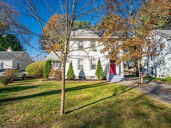 This Charming house features hardwood floors throughout, master bedroom upstairs and downstairs. Living room, dining room, full bath and half bath - all downstairs, which leads to outdoor deck for grilling and an inviting large backyard and shed. Upstairs feature an office area (den), 2 bedrooms, 1 full bath and bonus room that can be converted to a bedroom, theater room etc. Award winning Niskayuna Schools. Long driveway for parking multiple cars. Private dead end street yet convenient location to gyms, highways, supermarket. Make this New England Style Custom Colonial yours today!!