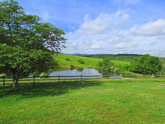 Incredible Mountain Views, 13.5 acres, a spring fed POND, amazing sunrise + sun set views, a wide wrap around porch, and a large detached garage!! This property offers a custom 3-bedroom 2 Bath home with many custom features including: built-in bookshelves, a wood burning fireplace, oversized windows throughout the home with beautiful views from just about everywhere (windows updated in 2014)! Other features include updated Corian counters in the kitchen, large pantry plus built in china cabinet, master suite with a WIC on main, two guest BR's on upper level with tons of closet space and each have a built-in desk with a view of the mountains! The upper level has a Jack-N-Jill bath and a spacious & open floor plan! The full basement is unfinished but has potential for future finishing! The interior was recently painted, and the outside was painted in 2015! There is a new roof (2018) and 2 heat pumps updated in 2014! The detached garage was recently re-sided and is 24X30!