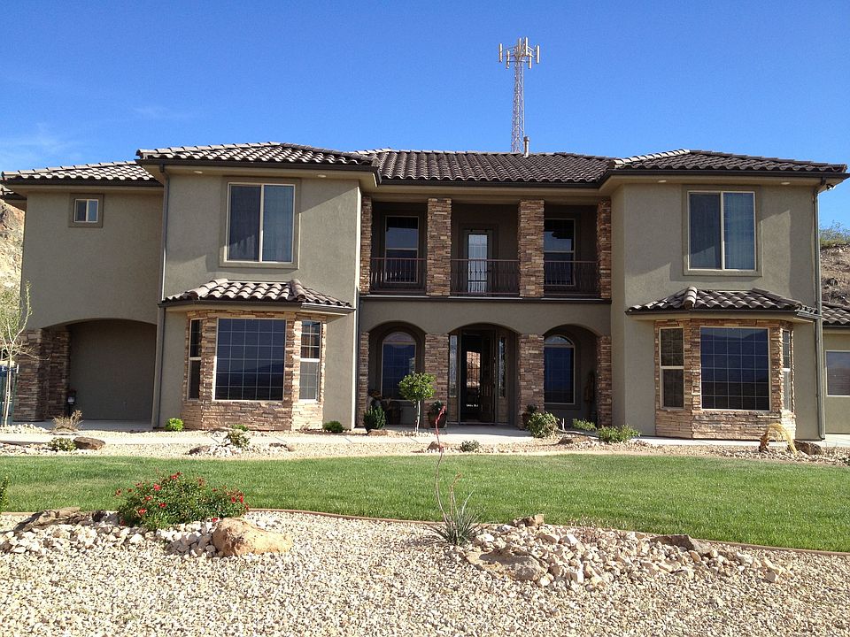 Custom built Mediterranean style two story home with neutral colors throughout. Rock gas fireplace. Custom cabinets with granite countertops. Stainless steel appliances.