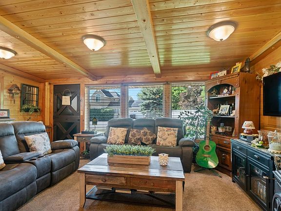 UC Nice brick home with large added garage and family room. Large RV carport, shed and covered patio. Kitchen has been updated including gas range with double oven. Dining, living, bedrooms and bathroom have been remodeled with knotty pine tongue and groove combined with knotty alder doors, base and trim. Cast iron Jøtul wood burning stove in the living room and gas fireplace in the family room keep the main living areas warm and cozy on those cold Winter nights Plenty of storage throughout