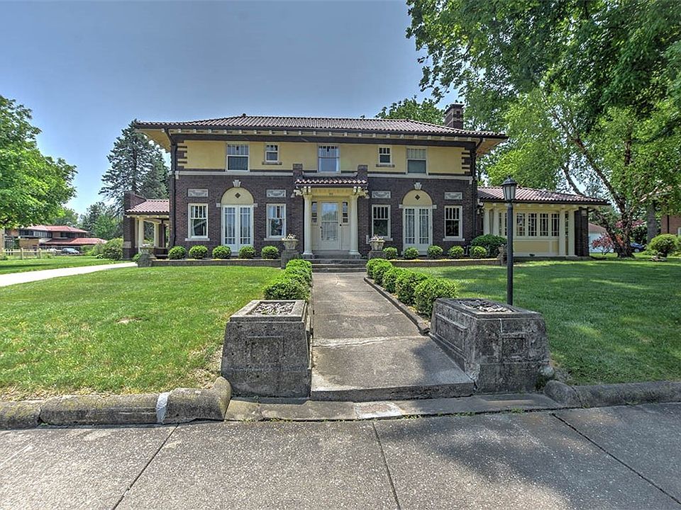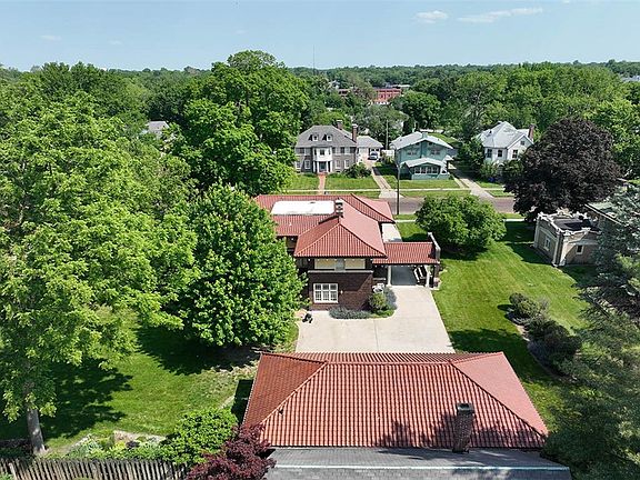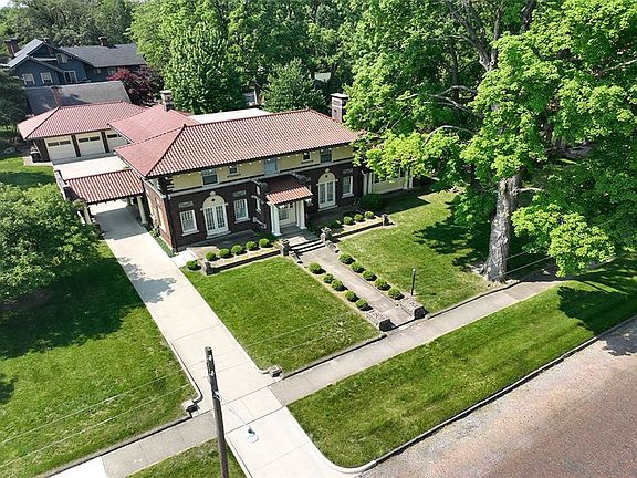 Historically named the Surface-Zeiss House, William E. Surface built the home in 1913. Loved and cherished for the last 32 years by the current third owner of this Art and Crafts Spanish Colonial. Stunning two story all brick masterpiece inside and out with split stairway to 2nd floor, 3 fireplaces, 4 bedrooms and 2.1 baths. Features include a covered portico at the side door, tile roof and copper gutters, .6 acres of flat landscaped property, a 3.5 car brick garage, stamped concrete patio and a huge newer concrete approach and driveway. Massive wood trim featured on the whole lower level, also many windows for the light to brighten the details inside. Upper floor laundry, plus a Jack and Jill bath and a hall bath, 4 bedrooms, one with fireplace, glass transom windows over interior doors and a sleeping porch are all on the 2nd floor.