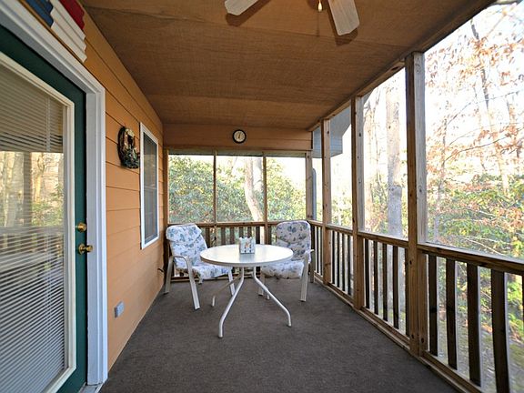 A true mountain cabin. 900 sf with great trees, great view and sitting on Long Branch Creek. Great room with cathedral; ceiling opens up to screened in porch over looking the loud cascading creek. Built in 2001 and used about 2 weeks a year so house is virtually a new house. Nice lot that is private but convenient.