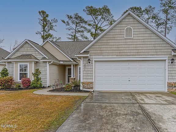 This well-kept, spacious home on a cul-de-sac located in the quiet golf community of Meadowlands is truly a steal! Spacious and bright with a ton of windows allow the sunshine to fill the rooms. This wide open floor plan and cathedral ceilings welcome you home as soon as you step through the front door. Kitchen has granite counter tops, stainless steel appliances and a spacious pantry. Large living room with Carolina room attached lead out to a back patio perfect for grilling. Split bedroom plan gives the master bed and bath its own wing while the second and third bedroom and second bathroom are on the other side of the home. The master suite boasts an ensuite with a tiled walk in shower, large vanity with double sinks, and walk-in closet. Large laundry room leads out to attached two car garage with pull down stairs to a partially finished attic. This home sits on a nicely landscaped lot with easy access to the residents' amenity center, complete with fitness room and outdoor pool. Golf on their gorgeous 18-hole championship course, enjoy lunch with friends at the Clubhouse restaurant or just take a leisurely stroll through the expansive community! Close to NC & SC beaches, shopping, dining and fishing.
