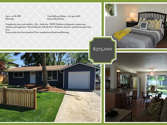 Hard to find, Edmonds Rambler near Yost Park. Totally renovated in 2015. Great starter home or downsizing home. Like new throughout: kitchen, granite, cabinets, appliances, bathroom with tile floor, manufactured hardwoods, vinyl windows, furnace & electrical panel all new in 2015! Spacious yard for fun that is totally fenced. Well maintained and ready to move into! Close to downtown, easy access to Hwy 99 and I-5 for going north or south. Enjoy your Edmonds life here!