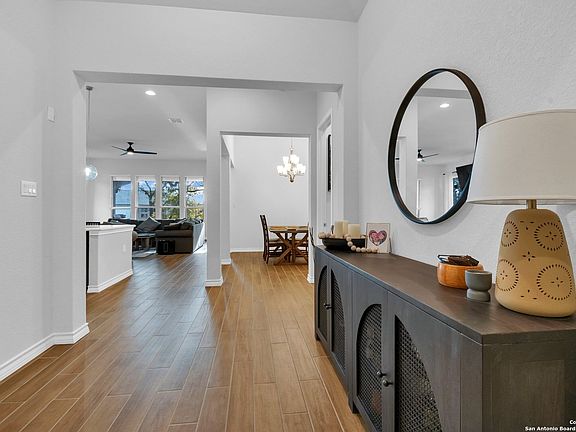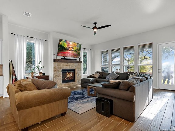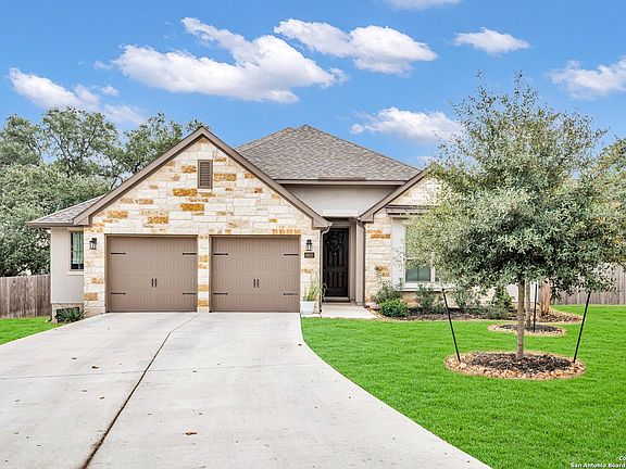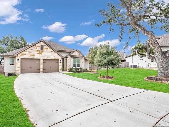 Experience Luxury Hill Country Living! Located in the prestigious Elkhorn Ridge community of Fair Oaks Ranch and Boerne, Texas, this beautiful residence, built by Monticello Homes, offers an exquisite blend of elegance and comfort. Step inside this 3 bedroom, 2.5 bath, 2351 sqft home sitting on a large .35 acre lot in a cul-de-sac. As you walk inside, be greeted by high ceilings and an open floor plan that seamlessly connects the living spaces. The heart of the home is the stunning living area, featuring a magnificent stone fireplace that adds warmth and character. The gourmet kitchen is a chef's delight, boasting granite countertops with a large island, stainless steel appliances, and plenty of counter space and cabinetry for all your culinary needs. The primary bedroom is a private retreat featuring bay windows. Enjoy the luxurious bathroom and large walk-in closet. A dedicated study offers the perfect space for a home office, library, or 4th bedroom. Outside, the covered patio, with tongue & groove ceiling, is ideal for entertaining or simply enjoying the serene surroundings. The expansive yard, adorned with mature trees, provides a peaceful oasis for relaxation and outdoor activities. The home also features a long driveway and a 2.5-car garage. Elkhorn Ridge is a community known for its upscale living and convenient location. Easily drive your golf cart to the Fair Oaks Ranch Golf & Country Club. HEB and the new Lemon Creek development are within 1.5 miles. Enjoy easy access to nearby attractions and parks with trails for jogging and biking, shopping, and dining options in both Fair Oaks Ranch, Boerne, and San Antonio. This home was built with plenty of upgrades, don't miss the opportunity to make this your forever home!