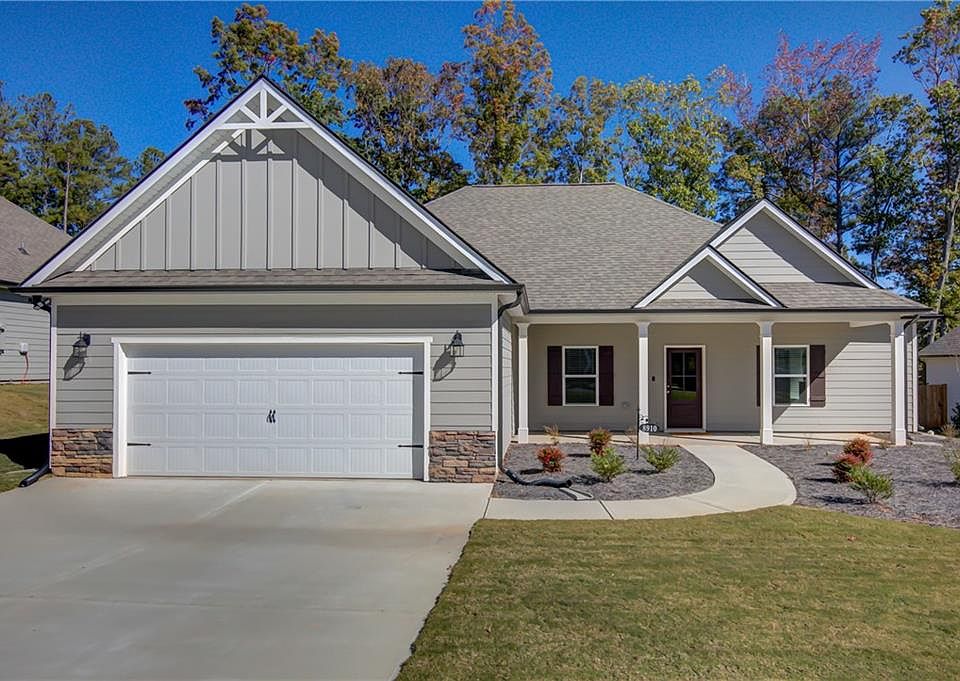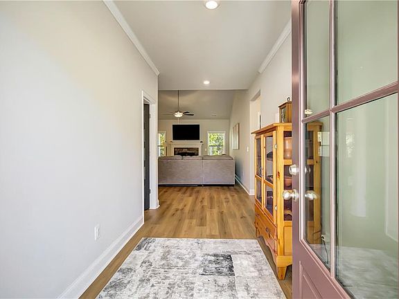 Better Than New! This stunning 4-bedroom 2.5 bath ranch offers modern style, smart design, and beautiful golf course views. The open- concept layout features a spacious kitchen with a huge island and breakfast bar, seamlessly connected to the expansive family room with a cozy fireplace- perfect for entertaining or everyday living. A flexible 4th bedroom with barn doors just off the kitchen makes an ideal office, playroom or guest space. The primary suite impresses with a stylish accent wall, a spa-like bath with soaking tub, separate tiled shower, and an oversized walk-in closet. The split bedroom plan offers privacy with two additional spacious bedrooms and a full bath on the oppposite side of the home. The mudroom includes custiom built-in storage and a large laundry area for everyday convenience. Relax outdoors on the covered back porch overlooking the golf course, and enjoy the garage equiped with a 50-amp EV outlet- ready for your electric vehicle.