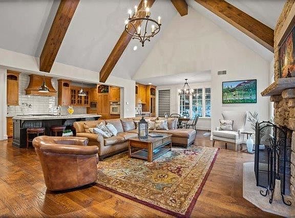 Complete teardown in 2013, this Rick Standard custom built home is better than new home construction!! Amazing floor plan offers INCREDIBLE upgrades: 6 bedroom suites, a SPORTS COURT in the basement, Open kitchen & hearth w/ top of the line appliances, a pot filler, steamer, pantry w/ coffee bar, beautiful granite island, Viking Range & so much more. Great room has true masonry fireplace, cathedral beamed ceiling & beautiful windows throughout. Wide plank flooring throughout 1st floor. 2 bedrooms on main level.