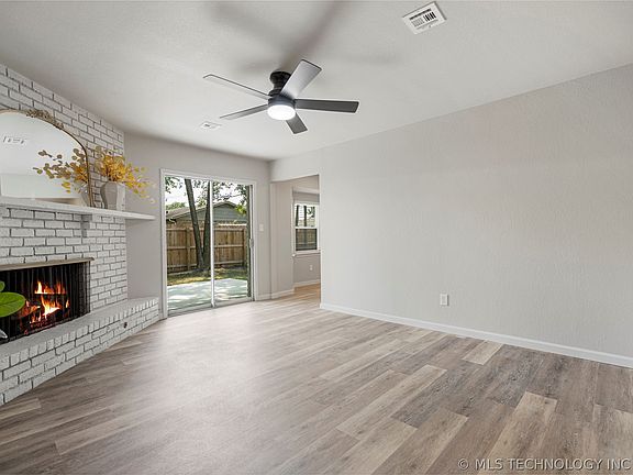 Excellent remodel on a quiet cul-de-sac executed with care and attention to detail! This cozy home not only exudes modern updates, but also 2024 interior/exterior paint, HVAC, HWH, exterior door, LVP flooring, vinyl windows with blinds, and more. Both bathroom spaces are rebuilt from the studs. Broad galley kitchen is flanked by new cabinetry, SS appliances including refrigerator, granite countertops, & a charming window above the sink! Primary bedroom showcases his/hers closets and a thoughtfully designed ensuite with tiled walk-in shower. Two additional bedrooms offer ample space and storage, complemented by a full hall bath. Enjoy the large fully fenced backyard with new patio under a canopy of mature trees. Neighborhood trail/park. Quick access to St. Francis Hospital & Highways 169, 51, & 44.