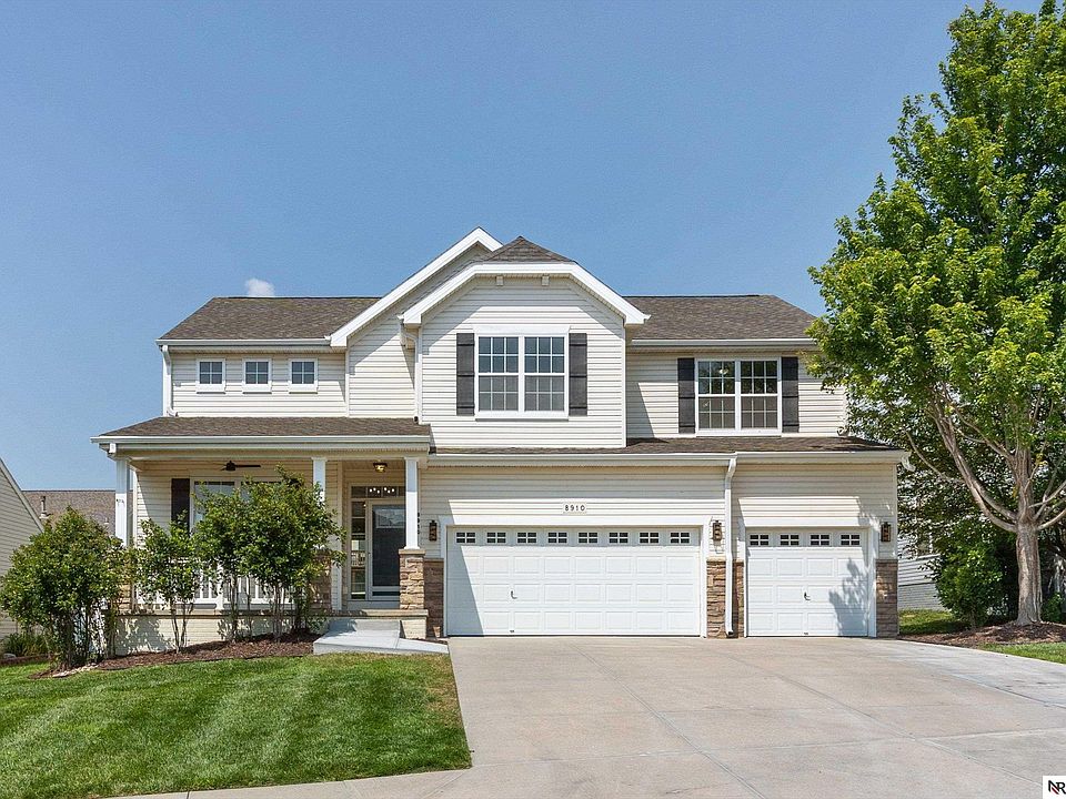 Hanover Falls Subdivision original model home features 3-car garages, 5 bedrooms, 3.5 baths, and a home theater in the spacious open finished basement. Move-in ready with new flooring and high-quality, contemporary paint highlighting the main floor's 9? tall ceilings. Updated HVAC system, brand new roof and gutters. Large bedrooms and closets, with the 5th bedroom doubling as a main floor office. It is easy to add a 6th bedroom in the basement. 2 gas fireplaces, granite countertops, built-in speakers trough, and a home theater with sound, lighting, and projector system.