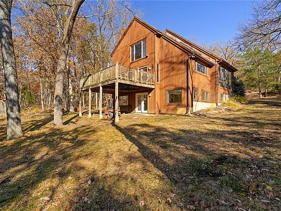 Once in a lifetime opportunity for 1.45 acres nestled in the trees and rolling hills of DeSoto. Beautiful treed lot with a winding driveway leads to this modern 4 bedroom, 4 bath home with rustic cedar exterior. Inside it's open and airy with so much natural light and contemporary Scandanavian influence. The Great Room features soaring ceilings with a wood ceiling treatment and a statement fireplace. Great Kitchen with island, tons of cabinet and countertop space is adjacent to the dining area - a perfect open concept for entertaining and hosting. Main level includes a secondary bedroom and full bath. Upstairs, features the Primary Suite and a secondary bedroom with hallway built-ins. The large Primary Suite has a fantastic view and a vaulted ceiling with wood ceiling accents, bathroom with double vanity, walk in closet. Great sized secondary bedroom has amazing closet space and an updated private bathroom. The 4th bedroom and bathroom are in the finished walkout basement that includes a Rec Room space and bar area - the ultimate hangout spot. Large 12x24 back deck is the perfect perch to check out all the local wildlife (deer, turkey, foxes, etc.) and enjoy every season. Backyard shed offers extra outdoor storage. Newer HVAC. In-ground utilities. Super private lot just minutes from it all. Top rated DeSoto Schools. Hurry, this is one you won't want to miss!!