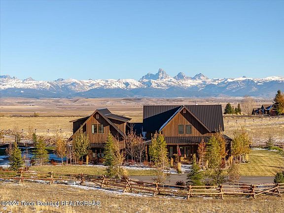 Nestled within the exclusive River Rim Ranch community, this remarkable 4,000 sq. ft., two-story home is situated on 7.13 pristine acres, offering permanently unobstructed views of the iconic Grand Teton Mountain Range. Designed for those seeking an upscale mountain lifestyle, this 5-bedroom, 5.5-bathroom home blends elegance, comfort, and functionality.