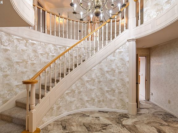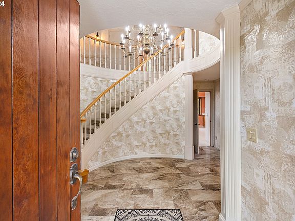 Delight in the charm of this spacious 4,684 sq. ft. Mascord design custom home featuring a vintage flair. Conveniently located down the street from Jesuit High School and the Portland Golf Club. This beautiful home is situated on a secluded private road and sits on a generous 0.79-acre lot, offering both privacy and proximity to desirable amenities.Step into a grand foyer with soaring ceilings, a stunning chandelier, and an elegant open spiral staircase leading up to 4 bedrooms including two master suites. Enjoy on the main level a sunken living room, complete with a wood-burning fireplace, and tall ceilings, which adds to the grandeur of the home. Bring your favorite book and cozy up to a warm fireplace.This property offers a spacious high-end, cosmetic fixer-upper opportunity, requiring just a little TLC to bring out its full potential. Enjoy entertaining with a full bar, complete with bar sink and a 45-bottle built-in wine rack. The home also boasts two wood-burning fireplaces with indoor wood storage, five bedrooms, three full bathrooms, and two half bathrooms. Additional spaces include a family room, TV room, utility room, living room, and den.A luxurious den with wood panel walls adds to the vintage charm. The oversized triple-car garage features tall ceilings, storage, and garage door openers. The fully fenced .79 acre yard includes a large gazebo perfect for summer entertaining and barbequing in a peaceful setting.Recent updates include some new interior and exterior paint, new vinyl waterproof laminate flooring, a new tile entry, with new appliances including oven, cooktop, dishwasher, and updated bathrooms. Pull up to your new home enjoy the convenient semicircle driveway and experience the blend of vintage charm with modern updates.