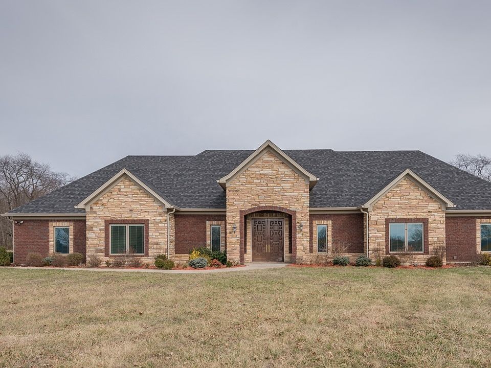 This AMAZING all brick custom built ranch with nearly 3000 finished square feet on the main level is situated on 4.5 acres of beautiful flat land. The opportunities are endless with this property. Entering the large double door entry you will immediately notice the abundance of natural light created by the wall of windows looking out to the back yard. To your left you have kitchen, dining room, and one of 2 master suites. To the right of the living room is the second master suite with amazing walk-in shower and walk-in closet. Moving down the hall there are 2 additional bedroom, another full bath and nicely finished laundry room. The home has a massive 3 car attached side entry garage with full storage above. This space above the garage has its own stairwell for access and could easily be finished as a studio apartment, gym, etc. Garage is equipped with hot and cold water spigots. This neighborhood does not restrict the addition of out buildings so that option is there. Back yard has horse fencing and comes with the above ground pool. Don't miss this chance to own such a exquisite piece of real estate.