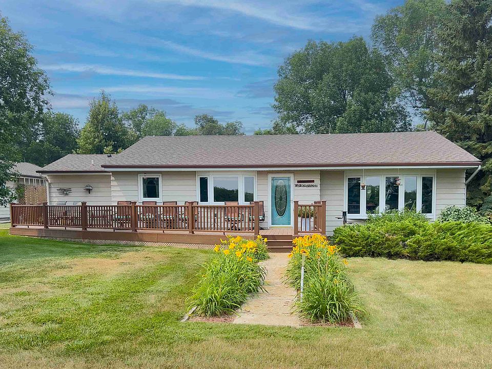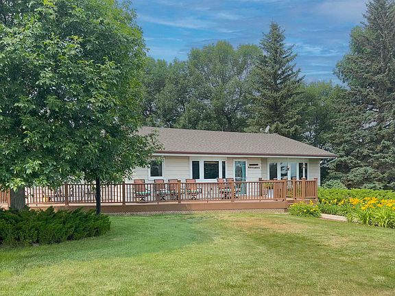 Welcome to this picturesque 9-acre farmstead located just one mile south of New Town, ND, in the heart of Lake Sakakawea. This delightful property boasts a 1,500 sq ft home with a finished basement, featuring 3 bedrooms and 1 full bath upstairs, along with convenient main floor laundry and an additional shower. The spacious downstairs includes a large finished family room, a full bath, and an extra-large non-conforming bedroom, perfect for guests or extra storage. The property is adorned with mature trees and comes with both a well (needing some updates) and rural water. Outside, you’ll find a 2-stall detached garage, a massive 40 x 120 shop, and a 50 x 100 quonset for additional storage. Seven grain bins with aeration systems, including five with hopper bottoms, add to the farm's functionality. Included in the sale are all shop tools, stick and wire feed welders, a diesel Grasshopper lawn mower, haying equipment, including a swather, sickle bar mower, and windrow roller, also conveys. Don't miss your chance to own this well-equipped, charming farmstead near Lake Sakakawea. Schedule your viewing today!