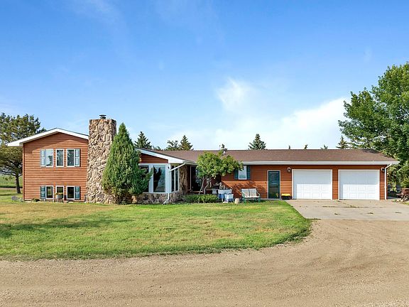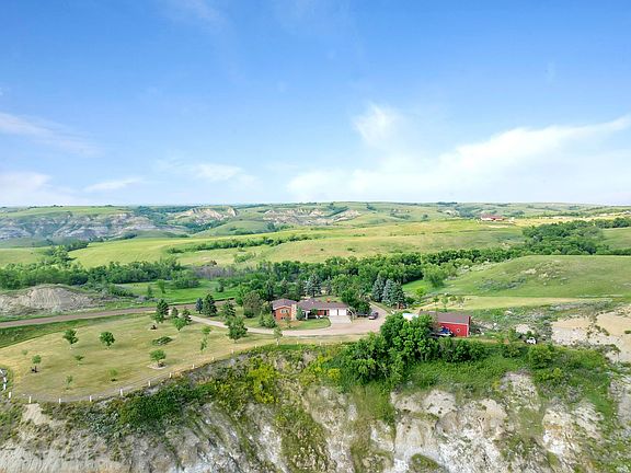 Nestled on top of a hill, this one-of-a-kind S H O W S T O P P E R features serene & panoramic views of Van Hook, New Town bridge & rolling North Dakota terrain. The homestead is situated just north of New Town on 10 acres. Pulling into the circular driveway, you’ll be in awe of the setting w/ mature landscaping & tree cover that accentuate the grand façade of this quality-built four-level wonder w/ 5 bedrooms, 3 baths & over 4000 sq. ft. Stepping into a farmhouse dream, you’ll be warmly welcomed w/ Hickory hand scraped hardwood & neutral tones. A chef’s dream kitchen is equipped w/ custom white maple cabinetry, pantry w/ rollouts, 8+ ft island, picture window, cast iron apron sink & quartz countertops complimented by tile backsplash & accent lighting. Appliances include dual wall ovens, gas stove top, oversized fridge, microwave hood & dishwasher. Well thought-out floor plan geared towards entertaining & everyday function w/ having an open layout to the dining space AND more space to enjoy company w/the BONUS four-seasons room! Ultimate tranquility w/ fireplace, built-in clothes drying rack, ceiling fan & abundant light in this extension of living space w/ vented skylights [automatic closure w/ moisture sensors], arched windows & Pella sliding glass doors to allow patio & yard access – WOW! Also off the kitchen you’ll find a living room w/vaulted ceilings & picture windows. Need to clean-up after a long day outside? Off the garage you’ll find convenient main floor laundry w/ bench, storage closet, cabinetry, sink & adjacent to this space is a ¾ bathroom. Upstairs you’ll find the primary suite w/ African mahogany hardwood flooring, ceiling fan & dual closets. Bedroom 2 is good-sized w/ fan & a 3rd bedroom space is currently being utilized as an office w/ custom oak-cabinetry – rounding out this space is a full bath w/ oversized vanity. Heading to the daylight basement level you’ll find a family room w/ plush new carpet, wood burning fireplace w/ ceramic tile floor, ceiling fan, recessed lighting & storage closet providing a place to stow extra goods. Also on this level is a 4th bedroom & custom tiled ¾ bathroom. Heading down a few more steps to the full basement is a remodeled THIRD living room w/ laminate flooring, 5th non-egress bedroom + office. A reverse osmosis system, newer AC unit & water heater PLUS 40-year asphalt shingles are just a few of the updates of comfort & convenience this home offers. The 28X24 attached garage has basement and main floor access. Like to tinker or need even more storage? Outbuildings include a 14X26 heated shop & a 32X48 heated shop equipped w/ 16X13 overhead insulated doors - perfect for equipment, boats, camper or just to enjoy as workshop. Don’t forget about the garden oasis w/ greenhouse & pond, heated dog house & storage shed! Additional 32.86 acres for sale as well. Property of this caliber w/ exceptional design, size, breathtaking views & close proximity to town are rare - check it out today!