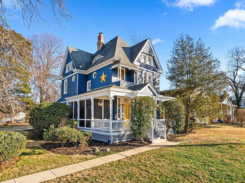 Offers appreciated by noon on Tuesday, 02/13. Welcome to the Cissel House! Built circa 1888, this bright, beautiful Queen Anne Victorian is a Prince George’s County Historic Site, set on a picture-perfect double lot. Head up the steps across the breezy wrap-around porch. Inside, you’ll find a welcoming, sunny living room with 10’+ ceilings, recessed lighting, and a fireplace flanked by double sash windows with border lights. A cased opening leads to the large formal dining room with a large bay and recessed lighting. Original hardwood flooring has been refinished in both spaces. Just past the dining room is a large bedroom with an en- suite bath; it’s also perfect for a family room or home office. The large, renovated kitchen opens onto a mudroom with first-floor laundry, a skylight, and a second first-floor entrance. Step out to a screened portion of the wrap-around porch that leads to an outdoor shower. Upstairs, the front bedroom has a cozy alcove with a door to a Juliet balcony. The expansive primary bedroom has an inviting alcove - perfect for a reading nook or writing desk. A third ample bedroom and a full bath complete this level. The unfinished attic with exposed brick has loads of potential for additional living space. The cellar houses a new tankless water heater and boiler (2022). Freshly painted interiors (2023) and exterior (2022). Original trim, moldings, and transoms run throughout the home. Out back, the large, sunny yard features a koi pond with a surrounding patio, a gazebo, two storage sheds, and a garage. Substantial driveway provides off-street parking. Eligible for Prince George’s County’s Historic Property Grant Program and preservation tax credit. Imagine owning this beautiful piece of Prince George’s County history!