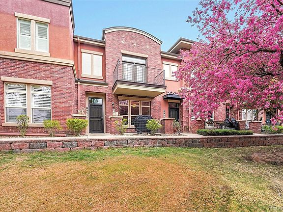 Welcome to the best view in Villas at Highland Park, a pristinely maintained townhome community in the perfect Centennial location. Curb appeal abounds as modern architecture meets mature landscaping in a park-like setting. This stunning south-facing brick townhome with serene views of water and greenbelt offers 2 primary suites, each with a 5-piece en suite bath. A generous 1,552 square-foot floorplan is perfect for easy maintenance without sacrificing space. Blending charming details with modern touches, this move-in ready home boasts laminate flooring, granite countertops and stainless steel appliances. Enjoy morning coffee on the balcony overlooking the community pond or spend evenings grilling on the patio under flowering trees. Relax in the living room by the light of the gas fireplace or get creative in the kitchen, where roll-out shelving and abundance of warm wood cabinetry make the experienced chef feel right at home. A built-in kitchen desk invites productivity while staying in on the action, and a convenient main-level half bath is perfect for guests. Dual primary suites with 10ft coffered ceilings create a welcoming environment for loved ones, as touches of granite and custom tile appoint the bright and airy primary bathrooms. Each primary bath features a dual-sink vanity, soaking tub, stand up glass shower, and walk-in closet with Elfa shelving. Chores are a breeze with an upper-level laundry with steam dryer! Keep your vehicles safe from Colorado weather in the two-car attached garage. Enjoy daily walks around the community's well-maintained paths. The best of shopping, dining and entertainment is at your fingertips, located just a stone's throw from all the Park Meadows area has to offer. Stay on-the-go and embrace the active Colorado lifestyle with quick access to I-25 and C-470. Quick 10-minute drive to DTC! Getting around the Denver Metro is a breeze with a 5-minute drive to County Line Park-N-Ride and County Line Light Rail Station.