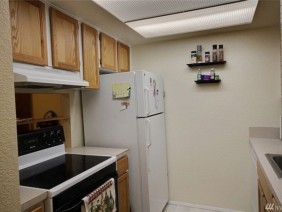 Investor delight-No rental cap! Or buy instead of rent! Bright, cute & clean 1 bedroom, 1 bath upper level unit with spacious balcony. Entry offers laminate flooring and coat closet; living room with big picture window; light kitchen with updating and all appliances stay-as well as the stackable washer and dryer! Sizable master bedroom will easily fit queen sized bedroom set. Close to schools, shopping and convenient to Boeing. Safe building with secure door & extra storage unit off of hallway!