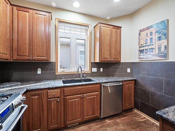 This is the Twinhome you been looking for with all the bells and whistles. Upon entering you will find Maple Woodwork, 6 Panel Doors, A fireplace for each living space up and down. A timeless Kitchen with Cherrywood Cabinetry, Granite Counters, Stainless Steel Appliances. The property is ideal for Main floor living with 2 Beds, 2 Baths, Laundry all on the Main. There's a Oversized Heated Garage, Two Large Storage Areas, Maintenance Free Deck, Custom Blinds and Much More. Absolutely stunning Place!!!