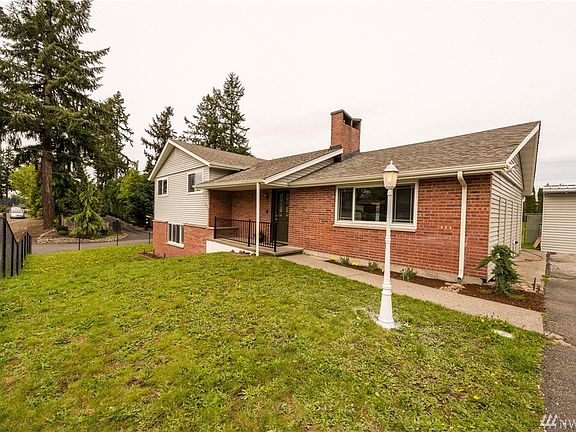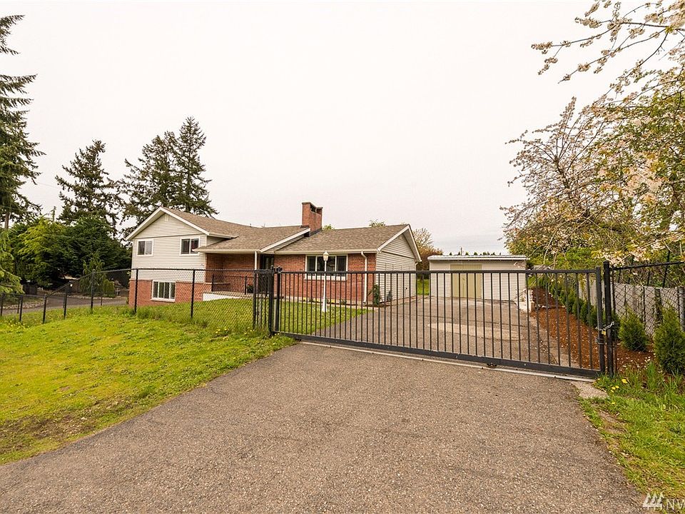 Welcome to a spacious home overlooking American Lake. This brick house on a corner lot offers plenty of space inside and out. Interior upgrade has large can lighting through living RM into fully upgraded kitchen with granite counters. Recently updated penguin windows, new interior paint, updated bathrooms. 2 BR , 1 full bath and the office @ upper level; 1 MBR with 1full bathroom and the family RM downstairs. RV/Boat covered parking, one car carport and fully fenced with electronic gate. !