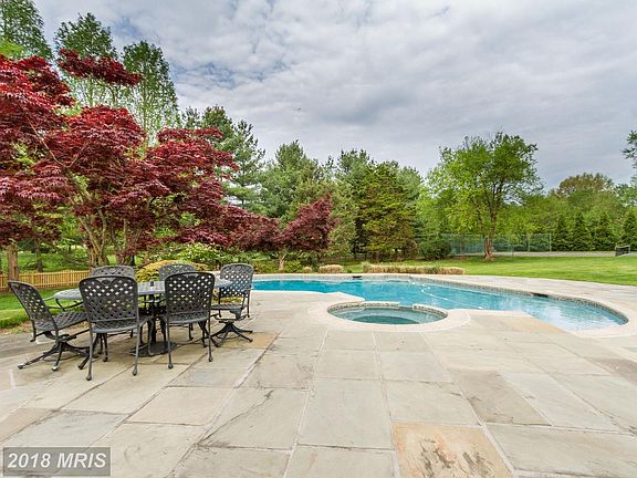 Country club elegance in this expansive colonial w/4 car garage on 2 acres w/heated pool/spa & tennis court. Two guest/nanny suites, top of the line additions in the entertaining/family areas done by Natelli, paneled library, 3 fireplaces, huge screened porch, french doors across back open to sprawling deck/terrace to enjoy the blooming yard. Whitman schools! Easy commute to downtown & airports!