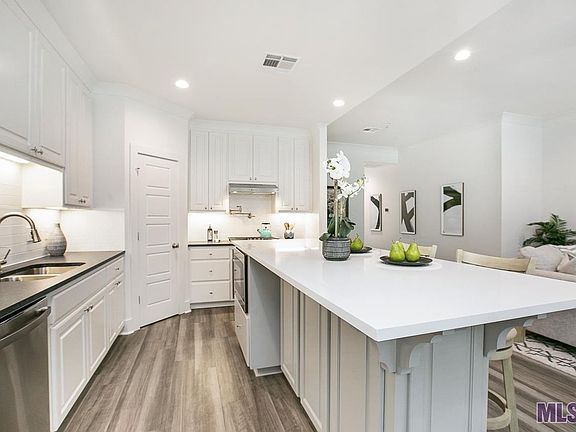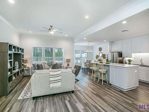 This is the community Model Home and includes many upgrades. Features 3bed/2bath single story home offering open and spacious livingareas with 10' high ceilings. Both living and dining areas are adjacent to the kitchen and attached keeping perfect for large gatherings. Rigid Core SPCwood-look flooring throughout the home with carpet in the bedrooms. Gourmet kitchen features oversized chef's island, GE stainless steel smart appliances with gas cooktop and separate wall oven and full walk-in pantry. Master bedroom has en-suite bathroom with dual vanities, tiled walk-inshower, garden tub and large walk-in closet. Includes a full size utility and added linen closets. 3cm quartz counters in kitchen and all bath counters.Enclosed 2 car garage provides secure entry to the home. Courtyard style back porch. Lessors are LA Licensed Real Estate Agents. Home will lease unfurnished.