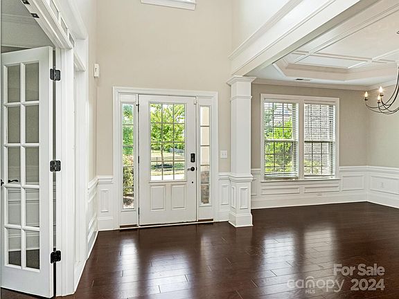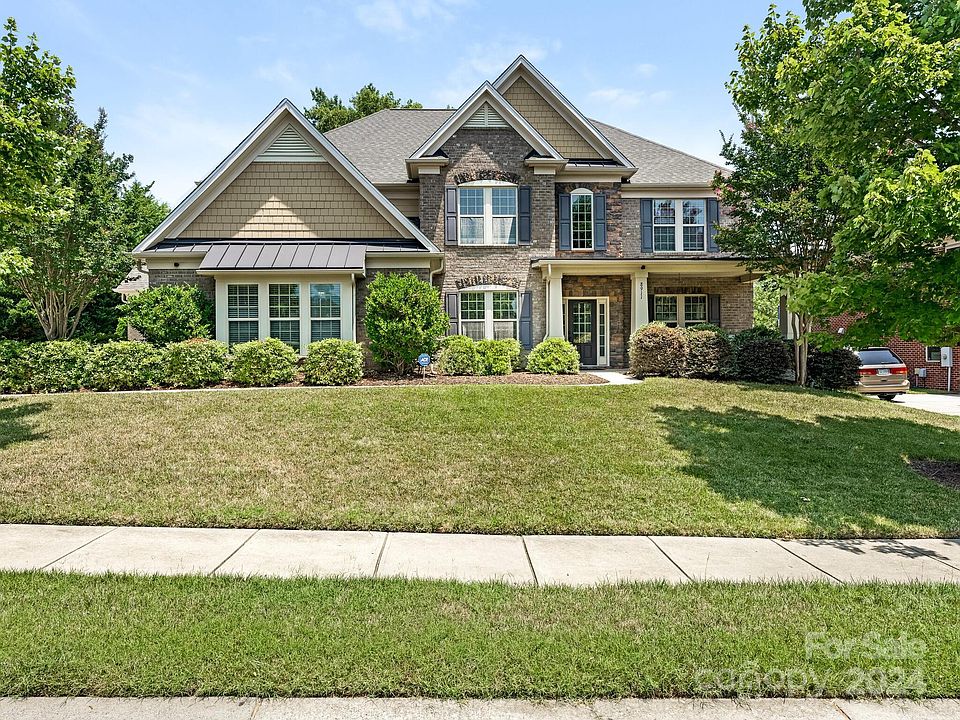 This exquisite 3-story residence, Avalon floorplan, offers space, style, and comfort, & mature trees. The layout is spacious, boasting 6 bedrooms & 5 bathrooms across three floors. This home is designed to accommodate guests with ease. The gourmet kitchen has stainless steel appliances, granite countertops & a large center island. With a bedroom & full bath on the main floor, guests can have their privacy. Upstairs, there are 3 secondary bedrooms, & the spacious primary suite with full en suite bath & large closet. The second floor has two additional full bathrooms, & a bonus room. The versatile finished third floor provides additional living space that can be tailored to your needs; a bedroom, a home office, game room. There is also a full bathroom with steam shower & closet on the third floor. Situated in a desirable neighborhood and walking distance to Community House Middle School, Ardrey Kell High School and the new K-8 school, with access to various local shops and amenities.
