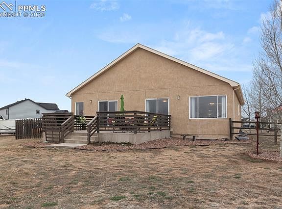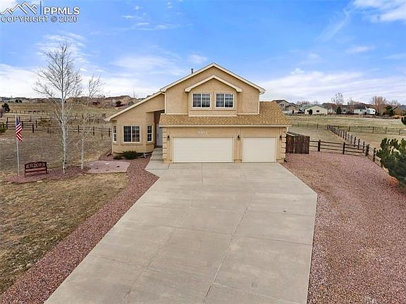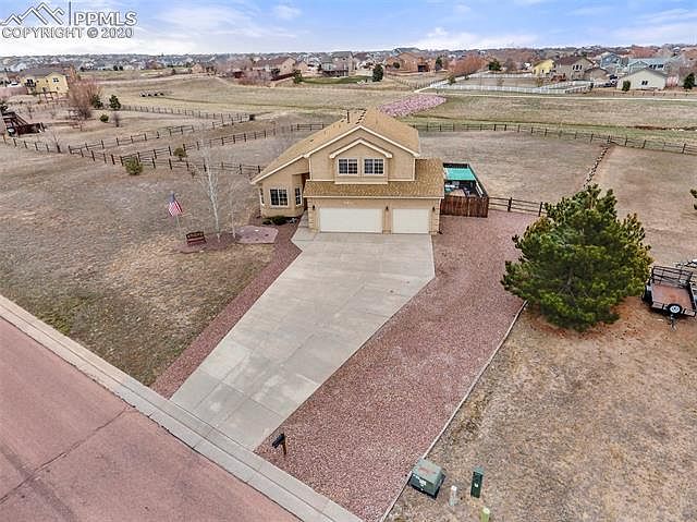 Well maintained custom built home in Woodmen Hills w/ over 1 acre, 3 car garage, a main level master bedroom backing to a 19 acre community open space area. Plenty of space to build a secondary detached garage or RV garage. Main level laundry. Spacious main level master suite w/ 5 piece bath, walk-in closet and a walk-out to the back patio. Family room open to the kitchen and dining room w/ a gas fireplace, walk-out to the back patio, large windows and vaulted ceilings. Fantastic community with tons of trails, open space, rec center and tons of nearby amenities in Falcon. Formal living room with vaulted ceiling and bay window. The kitchen includes a pantry, all appliances and hardwood floors. The bedrooms all have walk-in closets. The upper level has a private loft, two bedrooms and a 4 piece bath with separate tub and shower. Partially finished basement with room to add additional bedrooms. Large basement family room and full bath. Fully fenced backyard. Beautiful landscaping, trees and rock borders. Fenced and covered storage area. Low maintenance stucco exterior and vinyl windows. 3 car attached and over-sized garage.