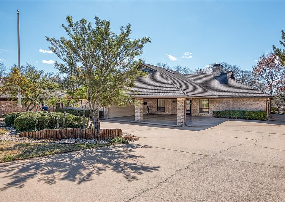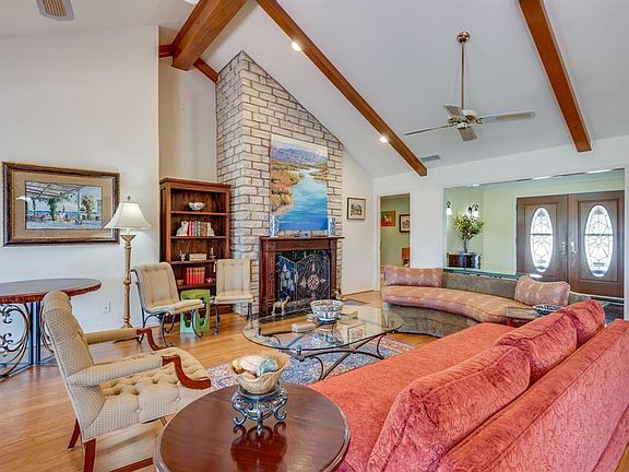 DISTINCTIVE ELEGANCE describes this sprawling rock home on the 7th fairway of the Pecan Plantation golf course. Open concept. Walls of windows offer panoramic views of the course. Living room boasts a soaring cathedral ceiling with wood beams & floors and a beautiful stone fireplace with handsome mantle. This custom home features 2 Master bedroom suites. Tasteful updates preserved the original character of this luxurious home. Roomy, functional kitchen. Abundant cabinetry & storage. LED lights. Additional 580 SF bonus room, bath & amazing storage upstairs. Durable steel shingles. Oak trees. SOLACE GERMICIDAL UVC disinfecting AC system installed April 2020. Oversized garage & carport; circle drive. Sprinklers.
