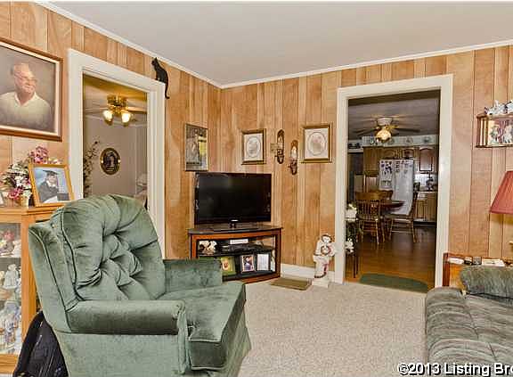 Hard to find!!! Ranch situated on approx. 1.4 acres in Jefferson Co. & priced under $110,000. Cute 3 bedroom, 1 bath home located right off New Cut Rd & Outer Loop, this home features several updates....Really large eat in kitchen with tons of oak cabinets,& newer pergo floor, all kitchen appliances will remain which include the side by side refrigerator, smooth top stove, built in microwave & built in dishwasher. (Cabinet w/ blue counter top is not attached & will not remain with the home). The full bath was updated approx. 4 yrs. ago, w/dual vanities, flooring & tub updated. New toilet recently installed. Nice size living room, all replacement windows were installed several years ago...The shingles were replaced approx. 3 yrs ago. Furnace & C/A unit (all one unit) replaced approx. 10 yrs ago. 3RD Bedroom is currently being used as an office. Enjoy your evenings on the covered back porch w/privacy, no neighbors behind you...There is also a 20 x 40 Garage/Pole Barn with concrete floor, electricity & garage door opener. It will accommodate 4 cars, (2 cars deep, per seller). Part of the 1.4 acres has a little wood fence around it to keep the dogs in the yard...Located close to shopping, restaurants & Gene Snyder Freeway. ****Note, only a small part of the home is the original age, the rest of the home was added on years later, per seller****