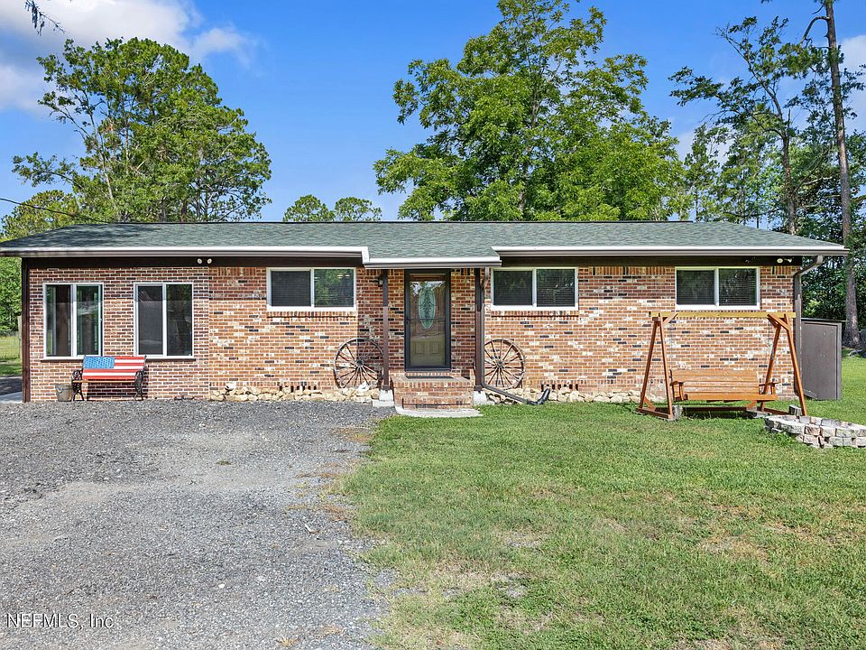 Nestled on a picturesque 2.20-acre lot, this charming all-brick home offers the perfect blend of country tranquility and convenient access to modern amenities. The 3-bedroom, 1-bathroom residence boasts beautiful hardwood floors throughout and a recently remodeled bathroom. A cozy 228 sq ft Florida room, brimming with natural light, serves as an ideal spot for morning coffee or evening relaxation. This home is move-in ready, featuring newer windows adorned with custom blinds, ensuring both energy efficiency and stylish comfort. The property also includes a 10x10 chicken house, perfect for hobby farming, and a shed with electricity, providing ample storage or workshop space. A new water heater adds to the list of recent upgrades.The outdoors is a haven for nature lovers with a serene, stocked fish pond perfect for leisurely fishing. The expansive grounds offer endless possibilities for gardening, recreation, or simply enjoying the peaceful surroundings.