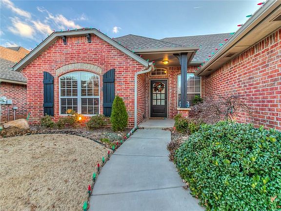 Well kept one owner home with Oklahoma City address in Piedmont Schools. Three bedrooms with office or four bedroom. Large kitchen with lots of storage, granite counter tops, breakfast area and a kitchen pass through to keep you connected to the living room. Well laid out living room with cozy stone fireplace, crown molding and lots of natural light. Really cool accent wall in formal dining with wood floors sets this one apart from the rest. Master features double vanity with shower separate from jetted tub and large Australian closet. Good sized office or 4th bedroom with a closet and plantation shutters. Back yard has nice covered patio and an extra patio space large enough for a dining table topped with a beautiful pergola.