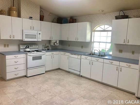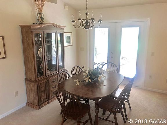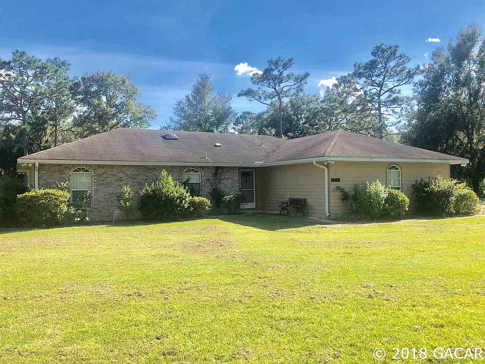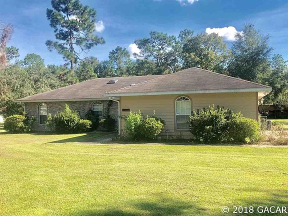 Lovely home in the beautiful Kanapaha Pines subdivision. This home offers a spacious 1616 sq ft with 3 bedrooms and 2 bathrooms, split plan. Large kitchen with pantry & breakfast table space that overlooks front yard. Great room including the dining room & living rooms. The living room has a stunning brick gas fireplace. Dining room flows right out to french exterior doors to a covered screen patio. Master Suite offers a large room with an over sized walk in closet, his & her sinks & walk in shower. Separate utility room with laundry tub. Exterior has Brick on front elevation and hardie siding on rest, out door shed and poured concrete pad for rv parking with electric outlet & full irrigation all this on a beautiful 1 acre corner lot.