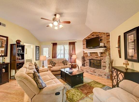 Lovely home great for entertaining! Open floor plan w/10 ft ceilings in living room that overlooks the gorgeous back yard & covered patio. Wood floors & tile throughout, walk in closets in every room, wood burning fireplace, granite tops in kitchen, rear yard access for boat, covered parking, & 2 drive ways, New AC, New heater, & New water heater. Beautiful grapefruit, Meyer lemon, & satsuma trees in backyard, shed/workshop, X flood zone $425 a year! This one won't last long! 1st SHOWING IS SUN. 4/9 12-2PM.