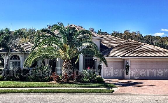 Annual rental available in the exclusive gated community of Stoney Brook at Heritage Harbour. This executive home offers a luxurious lifestyle with a formal living room, separate dining room, private office, four spacious bedrooms, and three full bathrooms and a three-car garage. The expansive kitchen is designed for entertaining, seamlessly flowing into the family room with a cozy fireplace. Step outside to your own private oasis featuring a heated saltwater pool and a fully equipped outdoor kitchen with stainless steel drawers, refrigerator, gas grill, and egg grill, perfect for the ultimate grilling experience. Resort-style amenities include a state-of-the-art fitness center, heated community pool and spa, tennis courts, basketball court, and beach volleyball courts. Conveniently located with easy access to public golf courses, scenic walking trails, shopping, dining, and the beach. Move-in requires first, and one month of security deposit, and an approved background check. Pet friendly with a monthly fee, restrictions apply. A resident benefits package is included for $35 per month. Currently tenant-occupied, a 24-hour notice is required for showings. Available starting around April 10, 2025. Amenities: community fitness, golf community, private pool, community pool, volleyball courts, gated community, community basketball courts