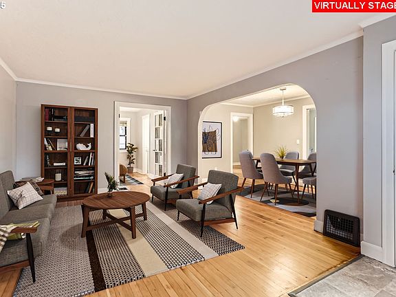 Move in ready! Bright & sunny bungalow nestled in a cozy NE Portland neighborhood you have to see in person! Enjoy life on a quiet street without sacrificing easy access to public transit and highways that makes for the best of both worlds - it makes getting into town a breeze or if you like- scoot on out on the highway & there’s waterfalls, stunning river spots, hikes, giant off leash areas all within 15 min drive! The living room & formal dining room are both filled with sunlight from large windows in both and are connected by a beautiful arch that thoughtfully defines each space. With four generously sized bedrooms there’s plenty of living space as well as for what has all but become a requirement in 2025- a home office. That or if you prefer there’s potential for extra rental income. The downstairs bedrooms have their own access, making them ideal for roommates or a potential Airbnb setup without disrupting the upstairs living area.The home has been meticulously maintained with recently updated electrical, siding, and exterior paint - as well as newly refinished original hardwood floors that when mixed with all the sunlight this home gets - gives the rooms a honey toned glow that’s just magical *swoon*Step outside to a lush retreat with your very own walnut tree, a plum tree, and a hickory nut bush. During summer in the backyard, the flowering bushes burst into stunning pink, white, and red blooms,(ask agent for pictures!) creating a picturesque space - perfect for BBQs, gatherings, or simply soaking up the sun. The detached garage has been transformed into a master workspace, with everything you need to work on your projects in comfort - electricity, insulation, and added shelving for creative projects, hobbies, or extra storage.All this in a quiet, friendly neighborhood making for the perfect blend of charm, updates, and community—this bungalow truly feels like home. (buyer to do due diligence re: AirBnB)