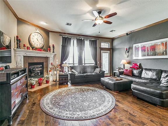 As soon as you walk in the door you will feel at Home! This 4 bed 2 bath home features an oversized 2.5 car garage and has been very well taken care of and updated with new flooring, water purification system and sprinkler system! The open living area has beautiful hardwood floors, gas fireplace and crown molding. Plenty of cabinet and counter space in the kitchen with easy pull out drawers in the lower cabinets for easy organizing! The ginormous master bedroom is separate from other beds and has wood-like tile, huge walk in closet, and a master bath with his/her sinks, jacuzzi tub and walk-in shower. Great deal on this gorgeous home!