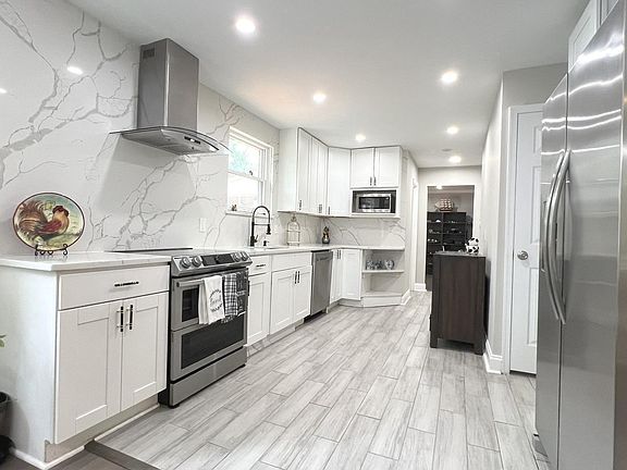 Welcome to this beautiful and professionally renovated home located on a private cul-de-sac. This home is recently painted with latest in style color. The landscaping of the front and the back of the house are completed. The kitchen is renovated with style and class. The dining is also renovated with new chandelier. Come and dine in the renovated dining while you are looking out of the bay windows. The dining room and kitchen combo is to die for. A very spacious living room with fresh paint and recess lights. There are recess lights throughout the house. The family room offer a brick front fireplace that walk out to the beautiful and spacious sunroom. From the sunroom, you can walk out to the spacious deck from grilling and/or sunbathing. Or you can sit in the sunroom and look out the beautiful and spacious fenced backyard. From the recreation room, you could venture upstairs to the Master Bedroom. The Master Bedroom is also renovated with class. The Master Bedroom has a private luxury bath with modern jacuzzi tub, modern toilet, his and her sinks, and the renovated shower is out of this world. The other 3 bedrooms upstairs are good size bedrooms. The second full bathroom upstairs is also renovated with class. This house has a walkout basement. The basement walks out of the spacious fenced backyard for your privacy. There is a kitchenette in the basement with a full renovated bathroom, a recreation room, and a large den. There are a large front yard and a long drive for cars and plenty of street parking. The large driveway could fit 4-6 cars. The complete renovation is done with taste and style. Everything is ready for you to move in. Owners have cameras in the house. Welcome Home!