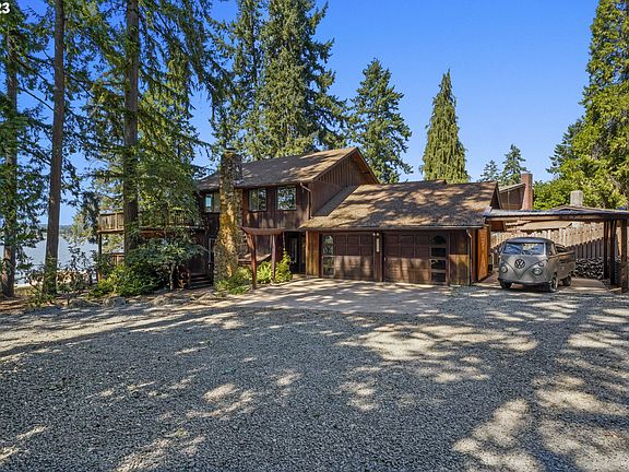 Welcome to your dream Lake House on Fern Ridge Lake! This beautiful property boasts 85+ feet of private lake frontage and breathtaking views of the water and surrounding mountains. Located just 20 minutes from Eugene in the charming town of Veneta, this tranquil oasis offers the perfect balance of peace and convenience. The home features 4 bedrooms and two baths, with views galore! The main level includes a spacious living room with fireplace, perfect for enjoying the gorgeous sunsets over the water. A cozy kitchen with island and an adjacent sunroom with wet bar and pellet stove provides an inviting hang-out space for all seasons with access to the huge wrap-around deck. The main level bathroom includes a Jacuzzi tub and a 100% Cedar Dry Sauna. Entertain and enjoy al fresco dining while taking in the panoramic lake views. Upstairs, the bedrooms are good-sized, with new carpeting, ample closet space, and unique charm. The spacious primary bedroom has beautiful lake views. The additional upstairs bedrooms also have lake views and one includes a private balcony. Outside you will find a huge west-facing wraparound deck, which gets great sun. A level grass area for games and a nice treelined yard for additional privacy. Stacked stone retaining walls, large detached workshop with loft, custom firepit fully fenced on 2 sides, and a powered front gate. An attached 2-car garage and separate redwood carport to store your boat or water toys. And saving the best for last - your very own private custom-built floating dock and water access. Don't miss out on this once-in-a-lifetime opportunity to own your own slice of lakefront heaven on Fern Ridge Reservoir!