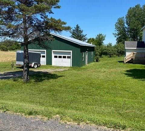 Look no further than this nicely remodeled home with a detached two car garage and work space in the back. The home offers large kitchen dining area. Bedroom and a full bath on the first floor with four bedrooms and a half bath upstairs. Decks and a storage shed. 300' of road frontage. Oh and a wood stove inside the home and a wood boiler for when winter really sets in. All new windows, updated roof and so much more. Loads of room for everything you could want. Circular driveway! A must see!