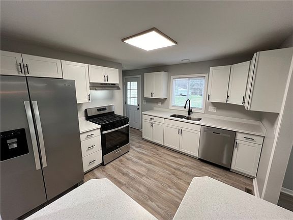All new inside and out! First floor living with a modern layout featuring vaulted ceilings, 3 beds, 2 full baths and a beautiful kitchen with solid surface countertops! Updates include roof, windows, siding, furnace, A/C, appliances, the list goes on! Private deck with large backyard on 2 acres! Call today! ** Gutters to be installed on 12/12-12/13