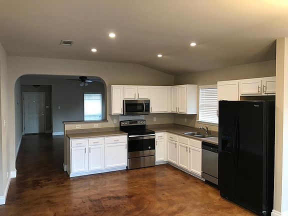 Beautiful stained concrete floors, new stainless/black appliances, open concept kitchen/dining, large master with walk-in closet, and garden tub. Large attic for additional storage. Tenant responsible for all utilities and yard maintenance.