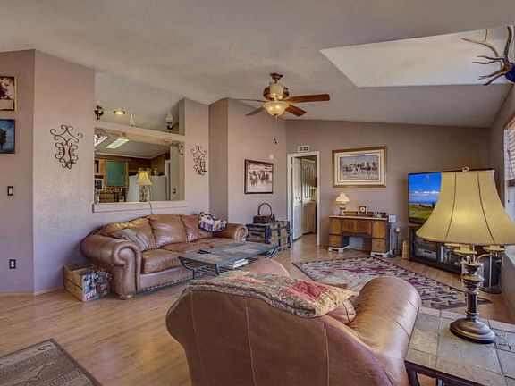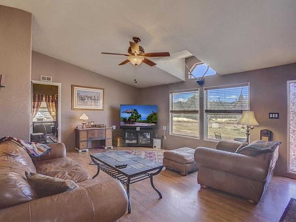 You don't want to miss this amazing horse property opportunity! Come enjoy a beautiful single-level home located on over an acre with an ideal 1780 sqft split floor plan with an open living area, 3 bedrooms/2baths plus a second living area. This bright and light home features vaulted ceilings, skylights, decorative shelves and nice architectural detail. The kitchen has custom painted cabinets, pull-out drawers, walk-in pantry, all appliances and nearby laundry room. The master suite has an en suite bath with a garden tub, separate shower, tiled counter tops and dual vanities. The two guest bedrooms on the other side of the home share a full bath and there is also an additional family room with fireplace. Outside, the spacious backyard has an expansive covered patio with hot tub and the yard hosts an above ground pool, fire pit and still has plenty of room for pets. There is an extra-large metal 2-car garage, room for RV parking, horse facilities of barn/corral and space to add more. The national forest and the trails are endless for horseback riding, ATV, hiking and otherwise enjoying nature. Don't let this wonderful property pass you by, come see it now!
