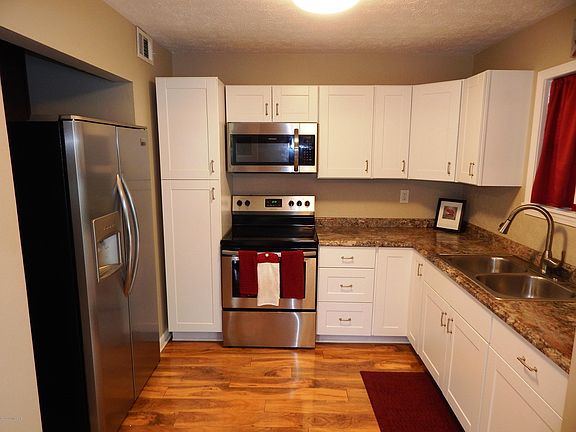 As good as it gets for less than rent would cost for this all brick, 3 bedroom ranch home in a convenient location. Completely redone with new walls, floors, windows, ceilings bath and kitchen in the last few years, plus all mechanics replaced. You will love the open area as you enter with vaulted ceiling. The kitchen with white cabinets and stainless appliances is so bright and airy you will enjoy preparing meals. Wood laminate throughout the house except bath which is tile look. You also get a 2 car garage with new driveway. A nice private yard tops this off as the perfect purchase. Don't wait.