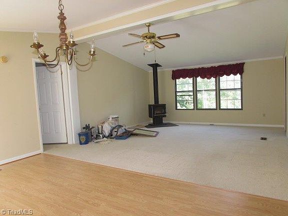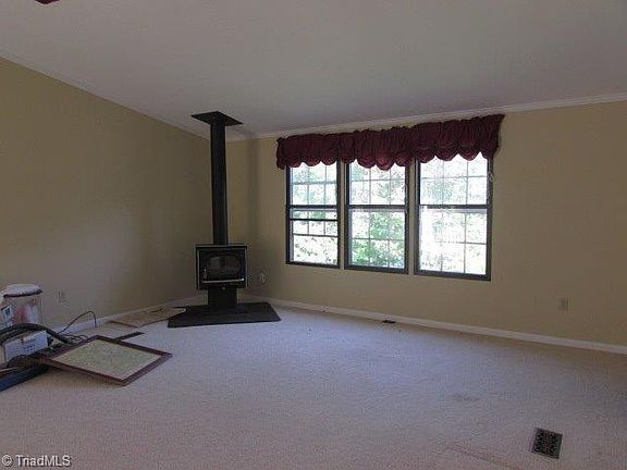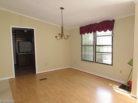 Southwest Area! 3 bedroom, 2 bath home on 4.4+ acres. Property is an estate being sold AS IS with no representations from seller. Doublewide & .75 acres situated in Randolph County, adjoining 3.72 acre tract is in Davidson County. Large LR w/ flu & wood stove, laminate flooring in dining room & kitchen. Island cook top, wall oven, dishwasher & refrigerator remain. Master bedroom with double closet. Garden tub, separate shower & double vanity in master bath. Selling as is. Electricity not turned on. ,