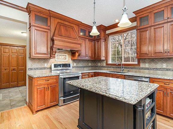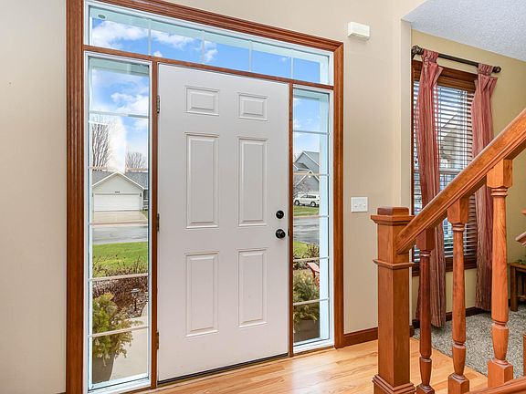 Available due to job relocation, this traditional 2-story home is conveniently located blocks from 2 city parks and minutes from Prior Lake’s Sand Point Beach. Inside you’ll immediately notice the freshly re-finished Southern Oak hardwood floors. Main floor offers office, flex room, spacious living room with custom built-ins. Remodeled kitchen with center island, Cambria counter tops and stunning custom cabinetry. A spacious mud room off the heated 3-car garage, separate laundry room and ½ bath. Upstairs are 4 bedrooms, with a unique one with 2 steps down upon entry, allowing an 8’ ceiling and impressive windows. Lower level with custom built ins, wet bar, gas burning fireplace, 5th bedroom and ¾ bath is an entertainer’s dream. Large deck off back of home with flat yard, garden beds and backed up by trees creating desirable privacy. New furnace 2023, water softener and water heater 2022. Located closer to Prior Lake Schools, these students open enroll there.