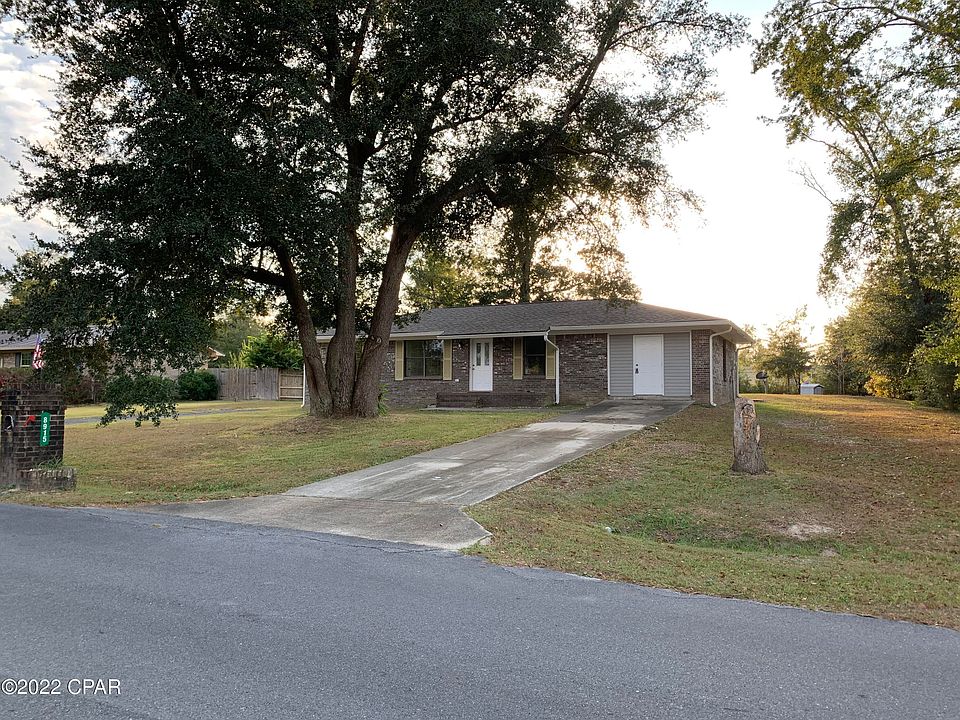 Well Cared for and clean brick ranch style home on a large half acre lot in Bear Creek. The home features a spacious living room, formal dining room, split floor plan, galley kitchen and a bonus room. The bonus room connects to the master bedroom and could be opened up to greatly expand the master bedroom into a very large master suite. There is plenty of room on the side of the home to drive an RV, trailer or pull a boat into the back yard. Bear Creek is just on the outskirts of town without being too far out. Enjoy the quiet living with a short 20 minute drive to town and only 40 minutes to Panama City Beach.