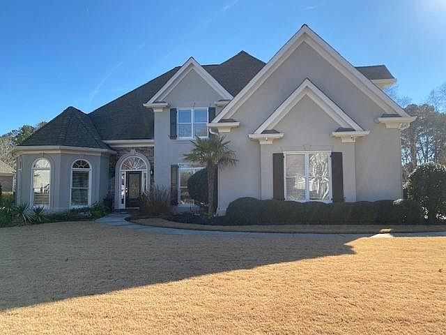 RARE OPPORTUNITY TO OWN A WATERFRONT HOME IN THE LAKE ESTATES OF AMMERSEE LAKES WITH LAKE FRONTAGE, VIEW OF NATURE TRAIL AND ATLANTA ATHLETIC CLUB GOLF COURSE. LUXURY EXECUTIVE HOME, MASTER ON MAIN. ENJOY THE QUIET SERENITY OF AMMERSEE LAKES WHERE NATURE IS A PART OF EVERY DAY. GATED COMMUNITY W YARD MAINTENANCE INCLUDED IN HOA FEES. SWIMMING POOL, LIGHTED TENNIS COURTS, LAKES, WATERFALL, FOUNTAINS, RIVER OVERLOOK, NATURE TRAIL, PICNIC AND BBQ FACILITIES. SO MANY FEATURES. MUST SEE. This is an elegant home with dramatic vaulted/volume/cathedral ceilings on main level. Living room has a story cathedral ceiling, a 2 story wall of beautiful windows fitted with plantation shutters including fan shutters in the upper level round top windows. Built in cabinets with book cases, a fireplace and an entertainment center grace one wall of the living room. The family room with stone fireplace has a vaulted ceiling and is open to a spacious casual dining area and updated kitchen. All rooms on main level rear of the home have a breathtaking view of the lake, nature trail and Atlanta Athletic Club golf course.